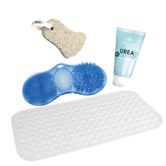 Jalahoolduse Spa-Komplekt – libisemisvastane matt, jalapesija, pimsskivi ja uurea jalakreem (Black Friday soodushind)